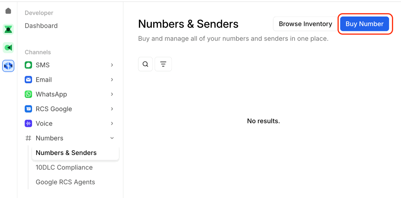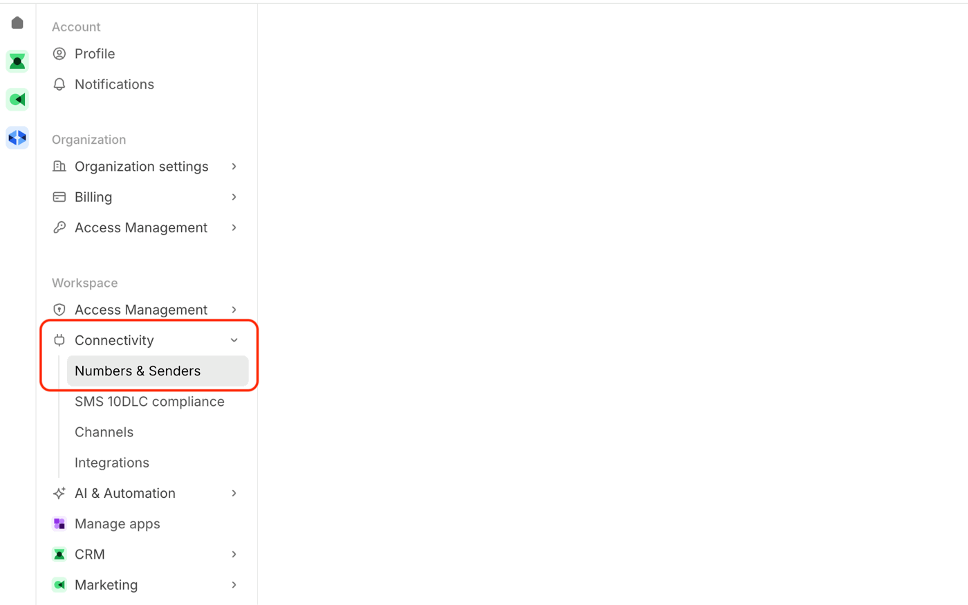 Now, navigate back to the 'Numbers & Senders' section of Bird. You can do so by navigating to the Channels section, and then clicking the 'Numbers & Senders' option on the menu to the left hand side.