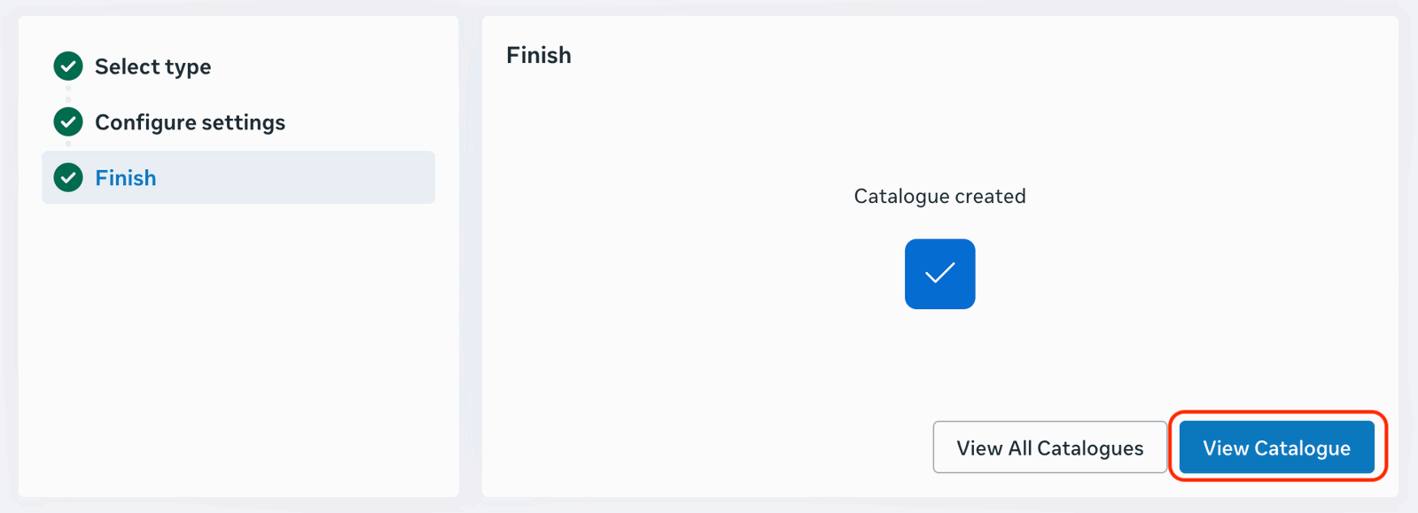 You should then see that your catalogue has been created. To proceed click 'View Catalogue'.