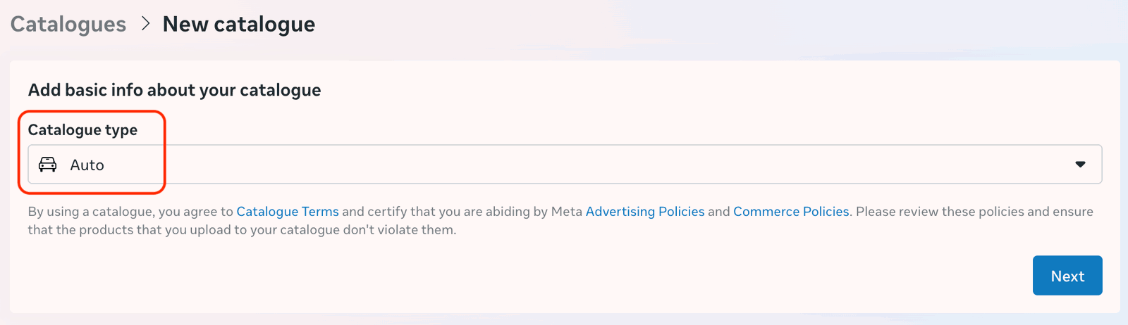 You will first need a Facebook Business Portfolio before you are able to create a catalogue and feed items into it via MotorDesk.