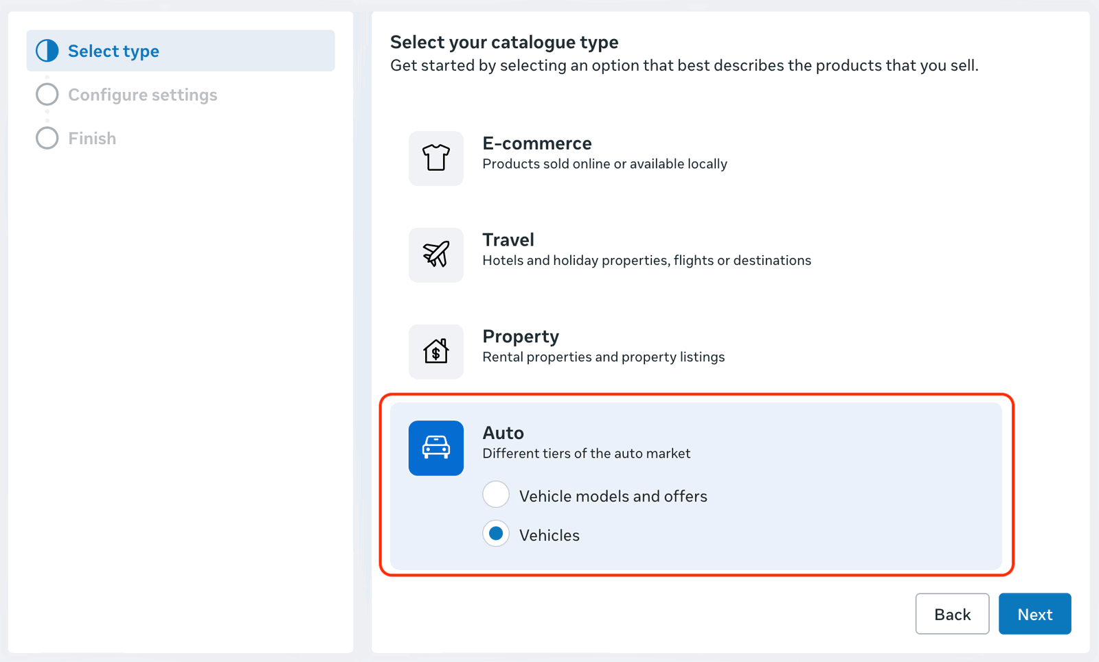 Once you've set-up your catalogue, please follow the Facebook Automotive Ads set-up instructions at: https://www.facebook.com/business/help/1930396467200635?id=378777162599537