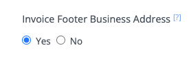 If you want to show your Business Address in the invoice footer, you can select 'Yes' next to 'Invoice Footer Business Address'.
