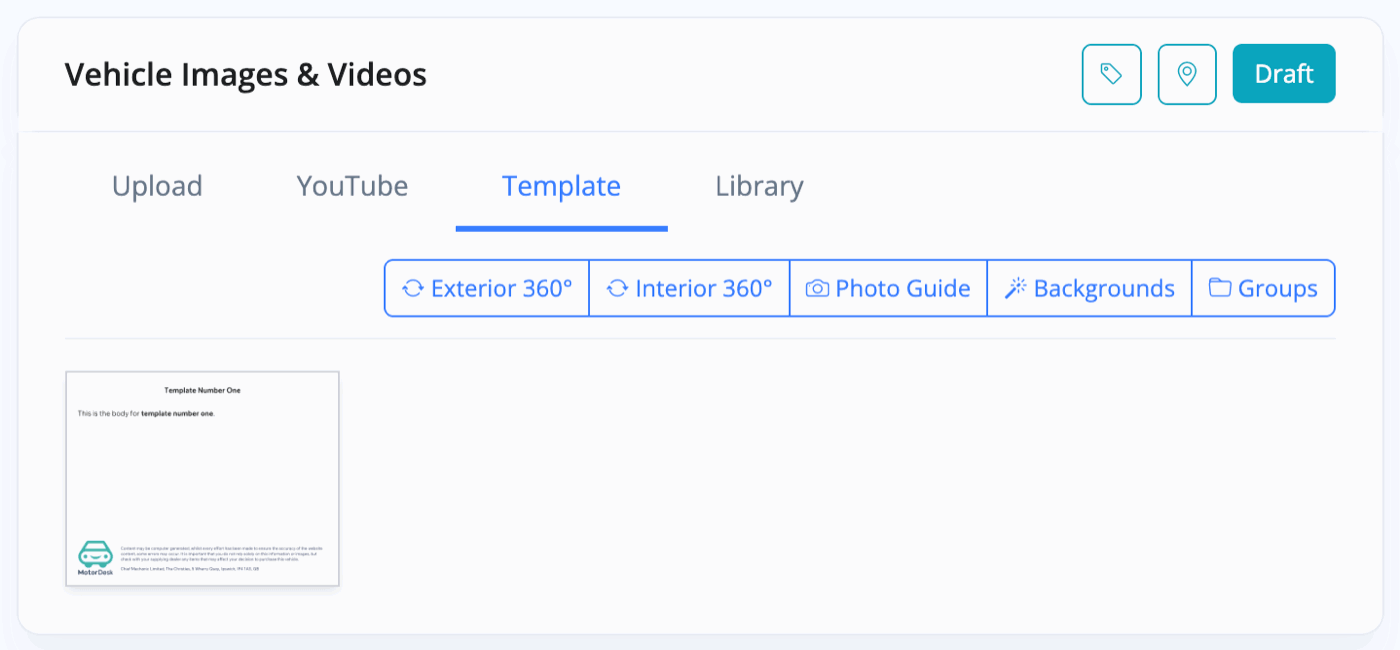 Once you have set-up some vehicle image templates, you will be able to use them when selecting your images/videos for a vehicle.